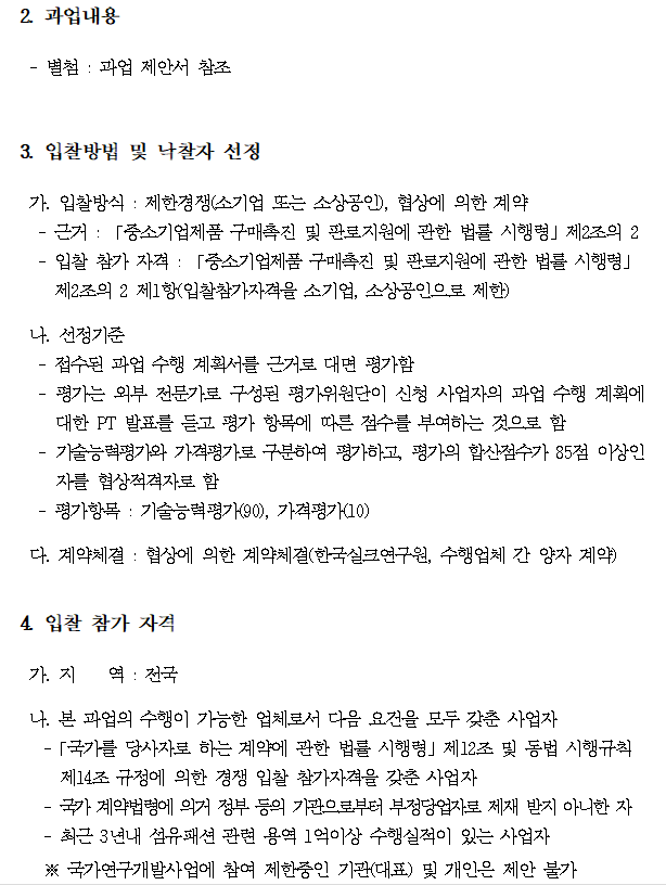 [공고] 진주실크소재 디지털 플랫폼 구축을 위한 로드맵 및 분류체계 개발용역 수행업체 입찰공고 글번호56 작성자관리자 작성일2023년 03월 06일 10시 25분 조회수266 입찰공고문.hwp 붙임1-용역과업지시서.hwp 붙임2-별지서식.hwp